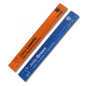 Slap bands, slap wristbands or snap bands as they are sometimes called have actually been around since the mid 1980's but have recently made a revival in the past few years. Currently they are being manufactured with materials such as PVC, reflective PVC and silicone. Slap bands were invented by a Wisconsin teacher Stuart Anders and sold under the name "Slap Wrap". These days with the use of PVC and silicone, slap wristbands have become an affordable and effective branded promotional item. With realistic production times and the options of 1 - 3 colour pad printing or full colour, full coverage sub-lime thermal printing, snap bands have once again become a hot promotional item for trade shows, nightclubs, dance parties, raves or any other type of indoor or outdoor promotional event.